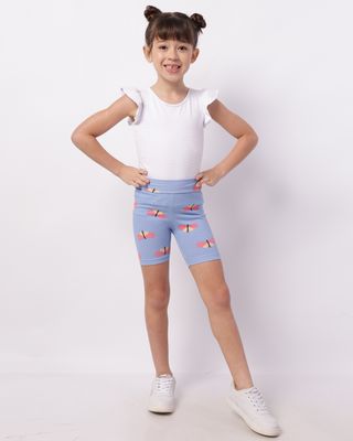 Bermuda infantil confeccionada em malha, possui cós regular com elástico, modelagem ciclista, estampado estrelinhas, e barra comum com costura e acabamento padrão.