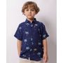 Camisa Infantil Estampada Tropical Gola Dobrável Marinho 8 |