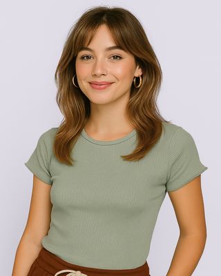 Mais Detalhes: Blusa feminina confeccionada em malha canelada, possui modelagem padrão. Com decote redondo, manga curta, frufru nas mangas e barra. Com costura e acabamento padrão.