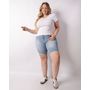 Bermuda Jeans Plus Size Feminina Barra Dobrada Azul 52 |