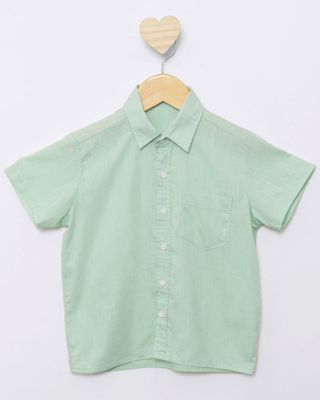 Mais detalhes: Camisa bebê confeccionada em algodão. Possui gola dobrável, fechamento por botões, bolso frontal, acabamento e costura padrão.