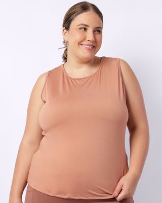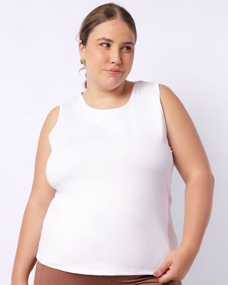 Mais detalhes: Regata feminina plus size, confeccionada em dry fit. Possui modelagem padrão, detalhe com transpasse nas costas e decote redondo. Costura e acabamento padrão.